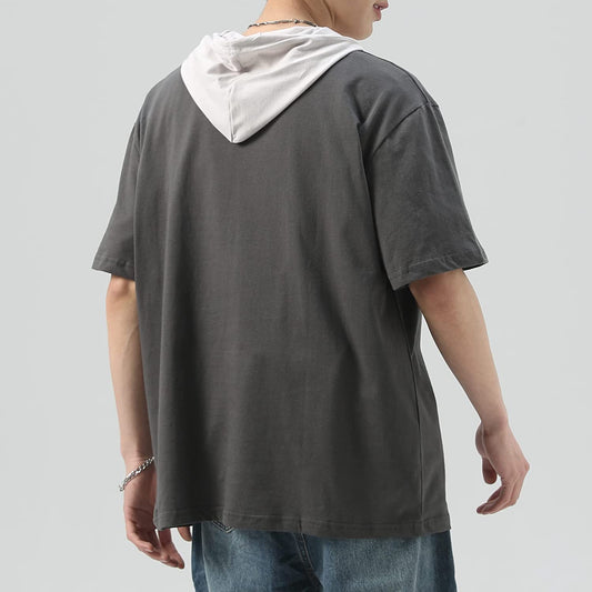 100% 綿 tシャツ プルオーバーメンズ 半袖 夏服 ゆったり ティーシャツ メンズ おしゃれ 大きいサイズ フード付き ゆったり カジュアル